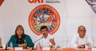 Tampico, Tam.; 22 de octubre de 2025. El rector de la Universidad Autónoma de Tamaulipas (UAT), Dámaso Anaya Alvarado, encabezó la 14.ª Reunión del Colegio de Directores, llevada a cabo en el Centro Universitario Sur (CUS), donde se reunió con titulares de las 27 dependencias académicas y funcionarios del gabinete de la Rectoría para revisar los avances institucionales y definir …