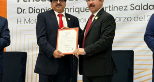 H. Matamoros, Tam.; 20 de marzo de 2026. Reiterando el compromiso de fortalecer la calidad educativa y consolidar el liderazgo institucional, el rector de la Universidad Autónoma de Tamaulipas (UAT), Dámaso Anaya Alvarado, encabezó la toma de protesta del Dr. Dionisio Enrique Martínez Saldaña como director de la Facultad de Medicina Matamoros para el periodo 2026-2030.Durante la ceremonia, celebrada ante …